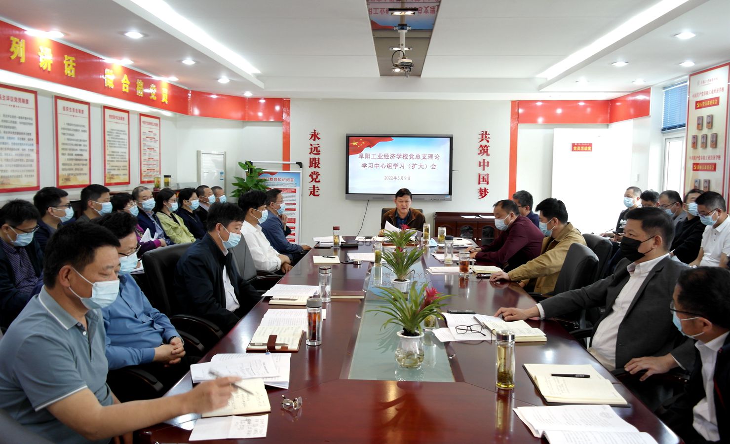 5月9日,我校召开党总支理论学习中心组学习(扩大)会,校班子成员、中层干部(含专业、学科组负责人)参加会议。会议由校党委书记、校长周波主持。