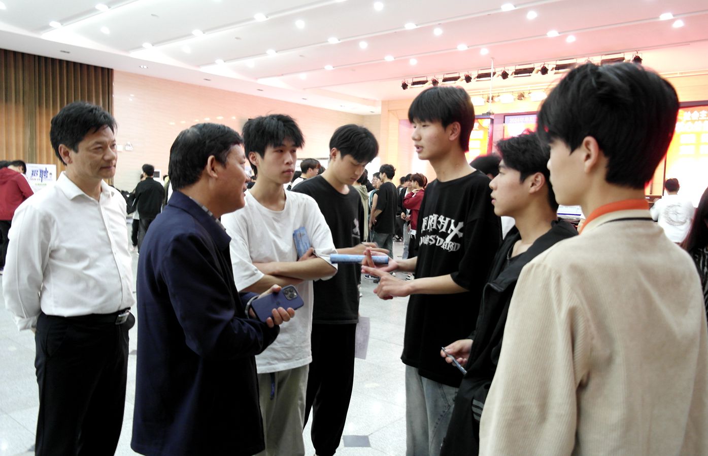 4月25日,阜阳工业经济学校举行2024年学生岗位实习双选会。校党委书记、校长周波携班子成员一行来到双选会现场,与用人单位接洽沟通,指导学生选择实习岗位。