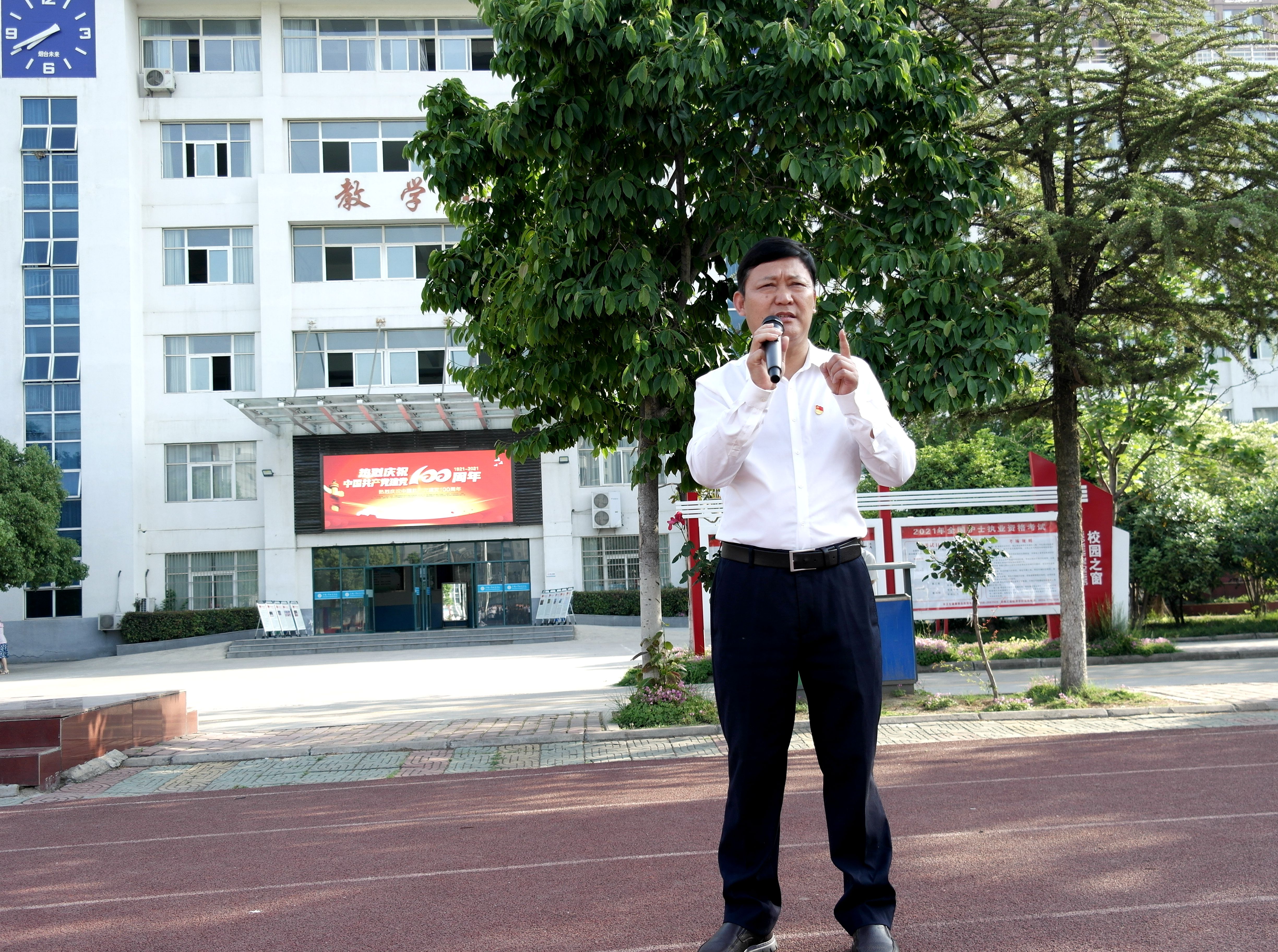 校党委书记、校长周波在升旗仪式上首先给广大同学普及了国旗基本知识,同时强调,我们要通过党史学习教育,做到学史明理、学史增信、学史崇德、学史力行。要对党史的教育真正搞懂弄清,中国共产党为什么“能”?马克思主义为什么“行”?社会主义为什么“好”?并希望同学们一定要刻苦学习,遵纪守法,养成良好的生活习惯,要爱校、爱家、爱自己,不断充实和提升自己,不忘少年的责任和担当,争做中国特色社会主义事业合格建设者和可靠接班人。希望同学们通过学习党史,激发爱国热情,树立正确的世界观、人生观,培育以爱国主义为核心的民族精神。