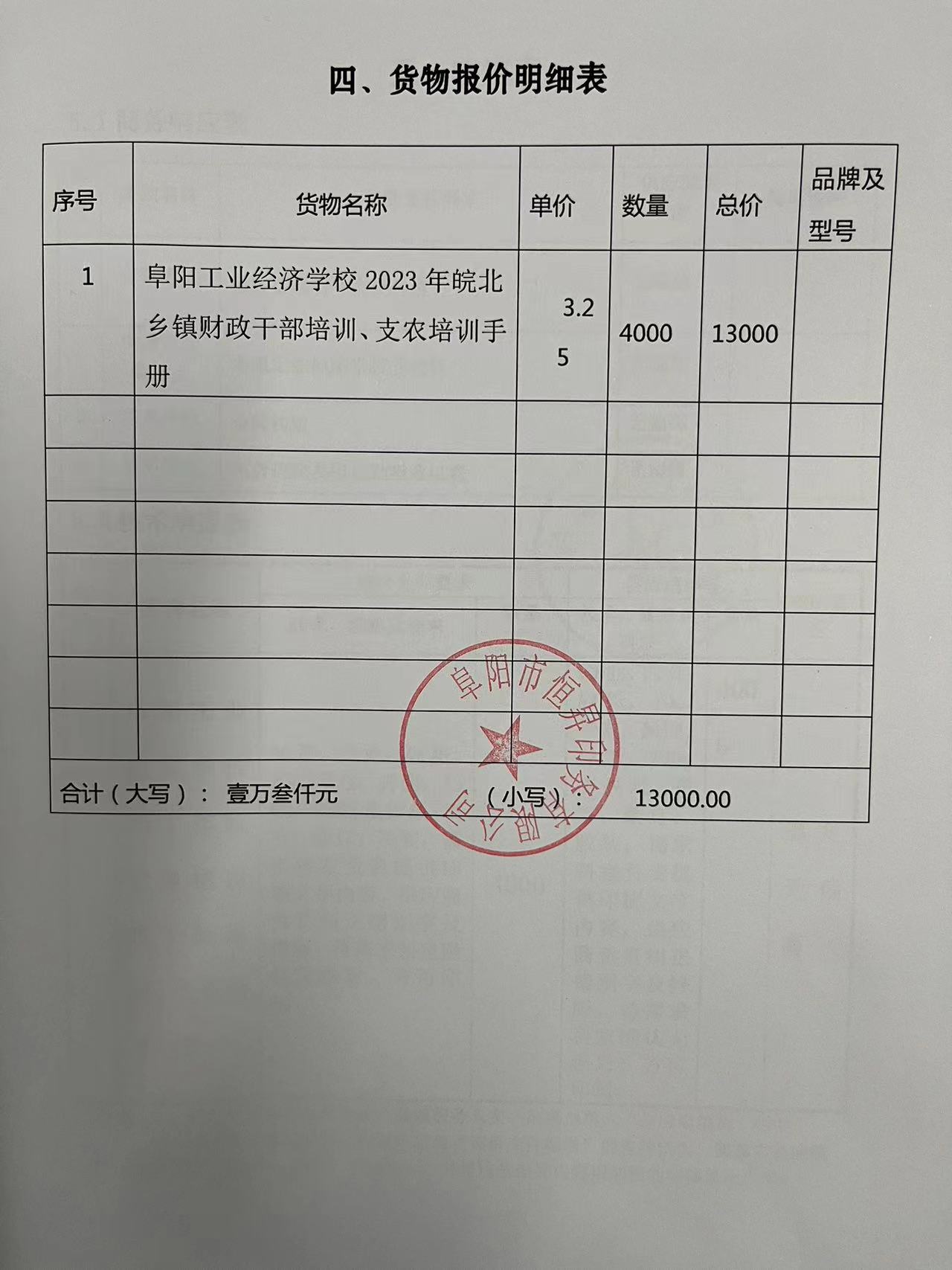 阜阳工业经济学校2023年皖北乡镇财政干部培训、支农培训手册采购项目成交公示