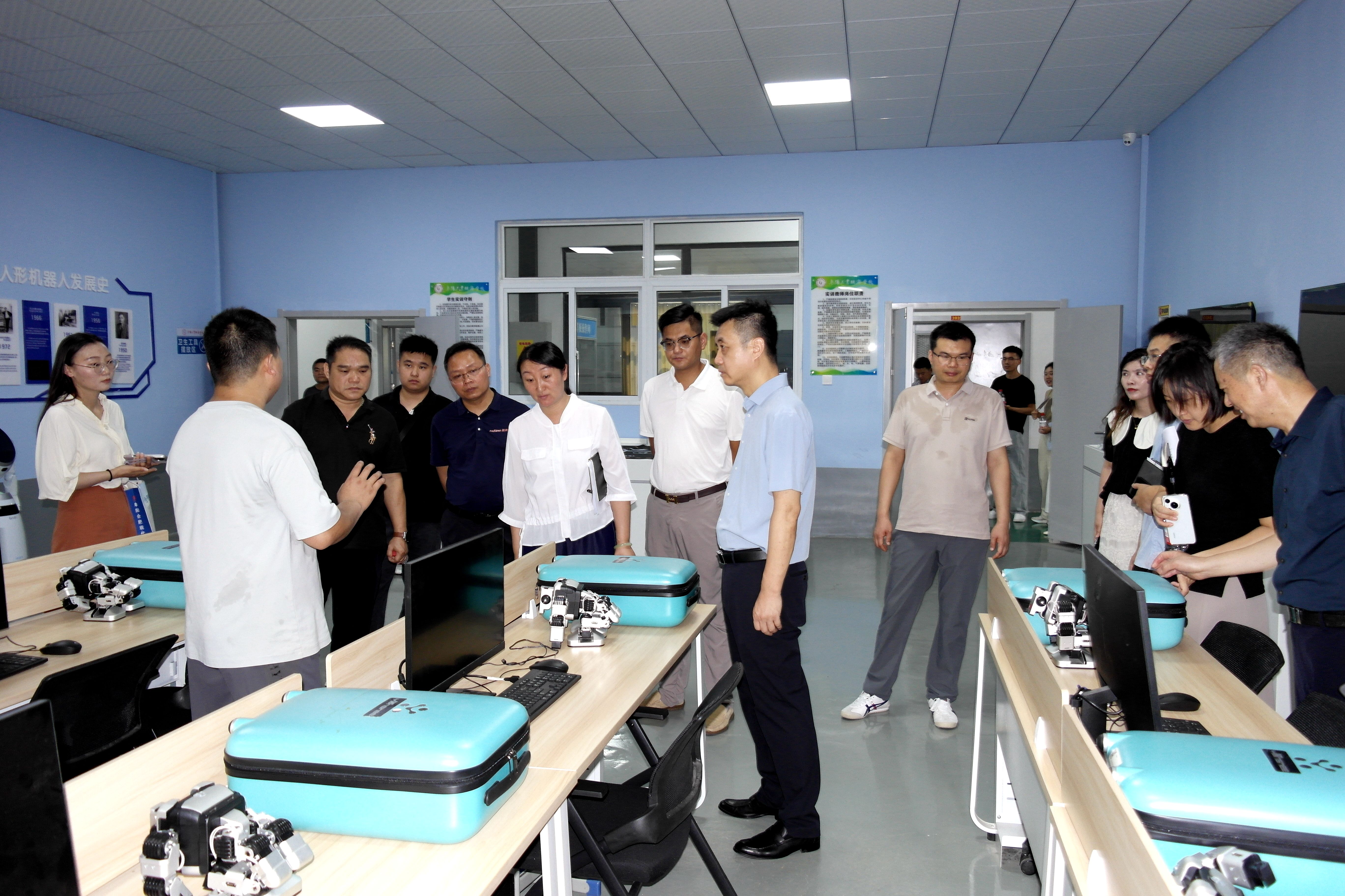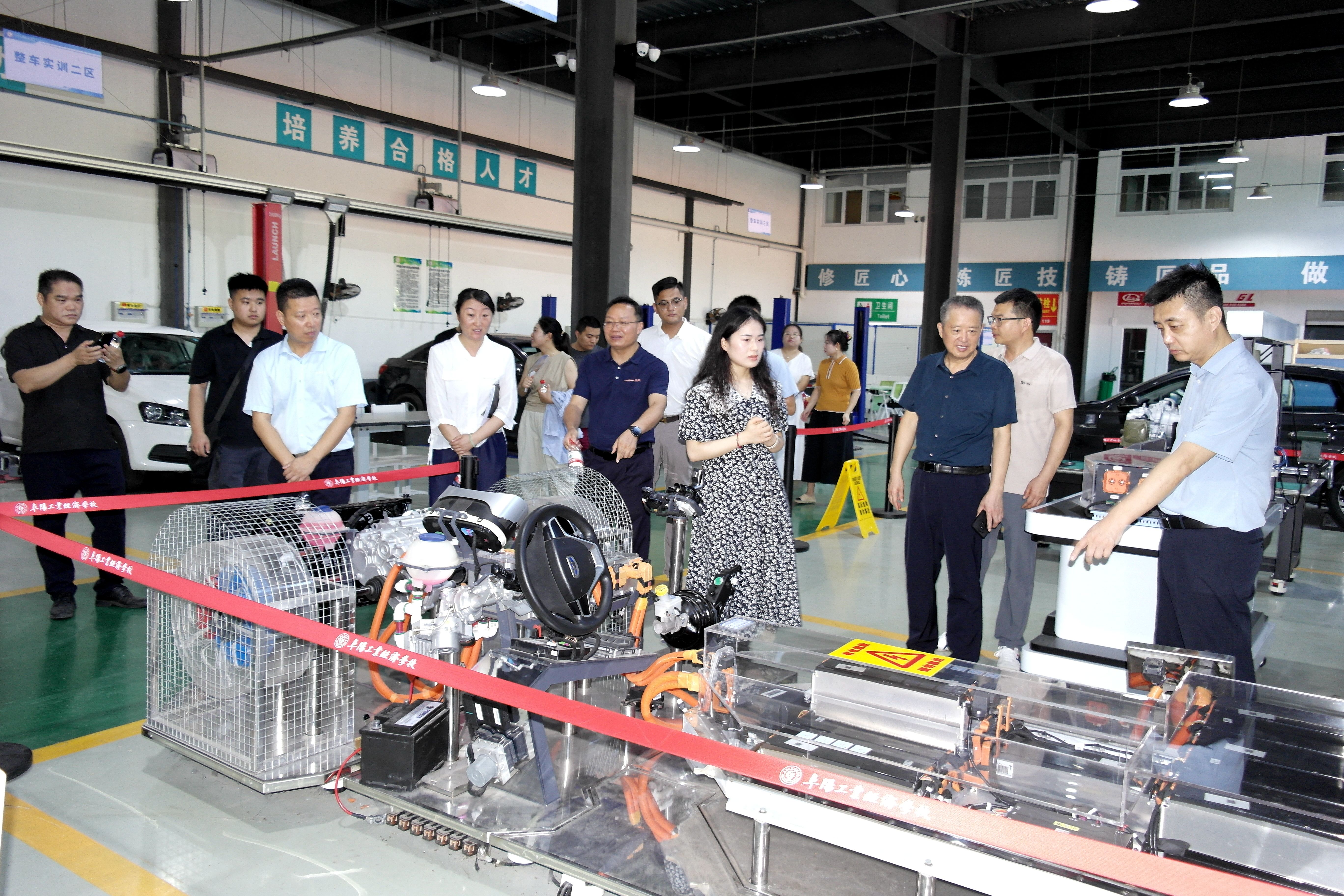 何艳局长一行在我校领导的陪同下,先对数控、汽修、机器人、财会等重点专业实训室进行实地参观。现场观摩实训设备的配置与运行情况,详细询问了教师实训课程的安排与开展效果,并结合自身企业的发展需求和行业人才标准,对我校的人才培养、课程优化、实践教学等方面提出了宝贵建议。​