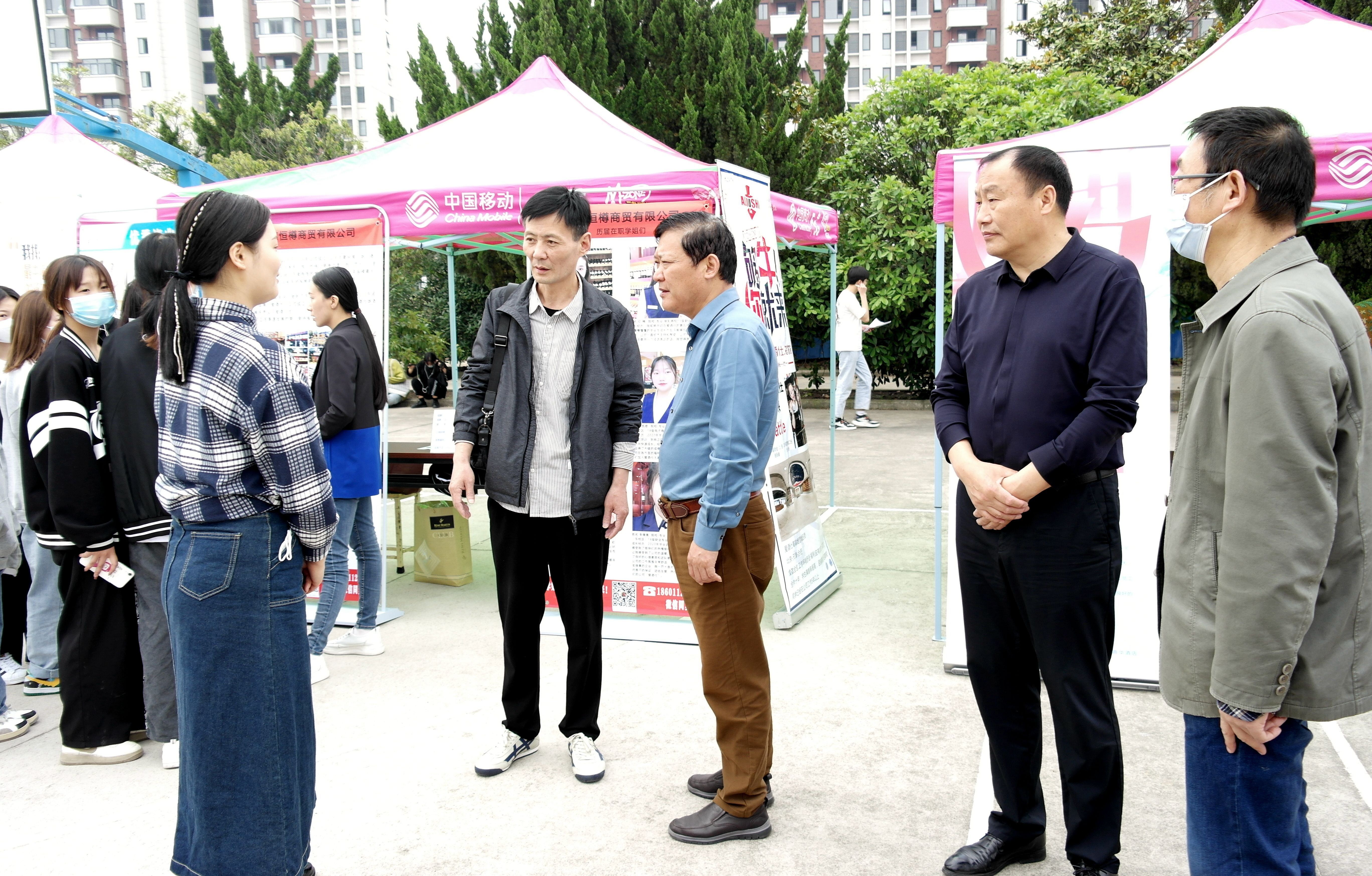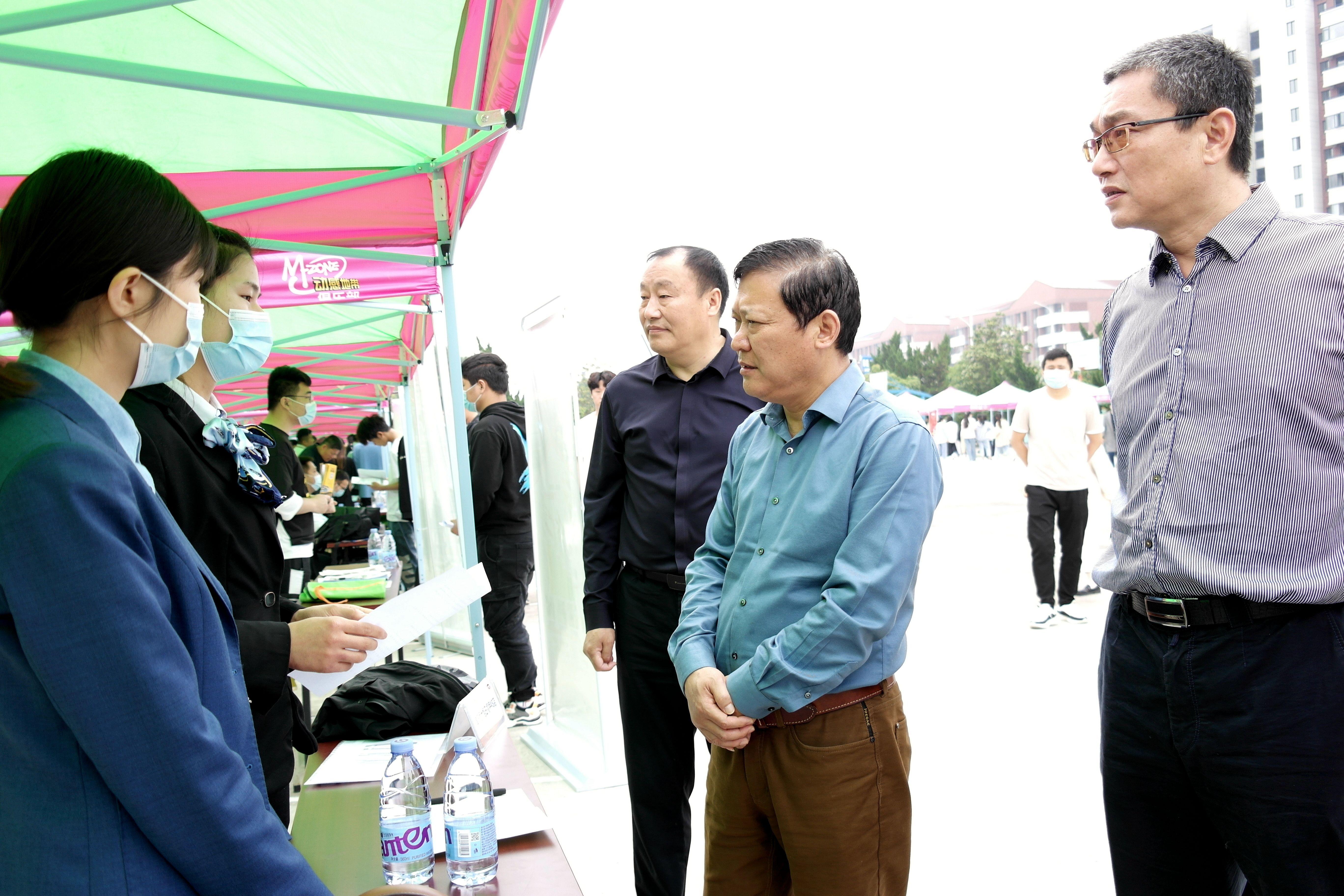 校党委书记、校长周波携班子成员和相关科室负责人来到现场,与部分用人单位和学生进行了交流,了解了学生投递简历情况、单位基本概况和相关工资待遇,并教诲学生们遵守岗位制度,加强劳动纪律,把课堂所学的知识用到工作中去,同时,与部分企业代表进行了深入探讨,并就我校学生专业对口实习和学生职业素养培养等方面提出建议。