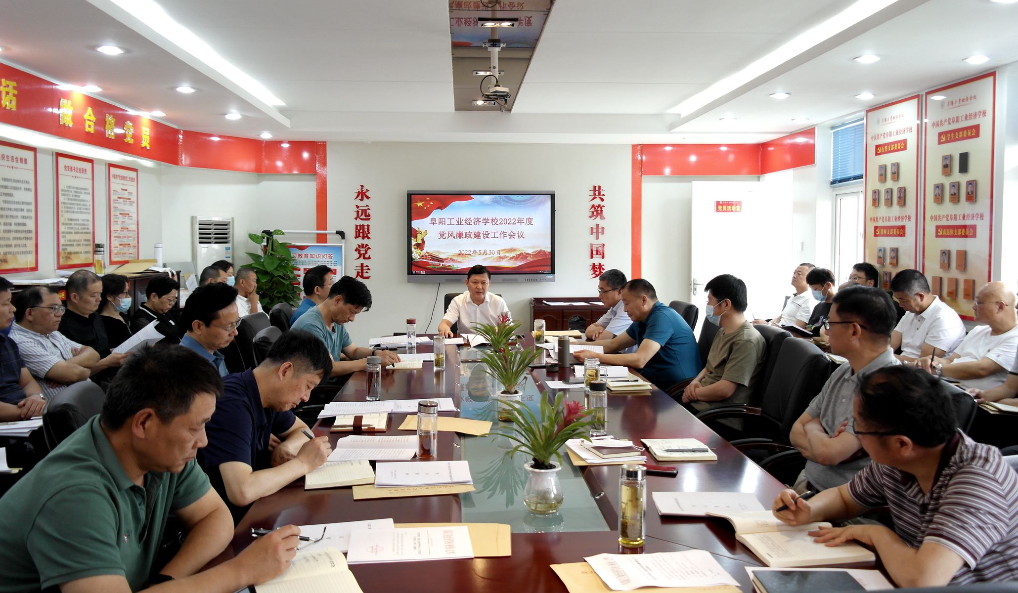 5月30日上午,我校在四楼党员活动室召开了2022年度党风廉政建设工作会议。全校班子成员、中层干部(含专业、学科组负责人)参加会议。会议由副校长潘光辉主持。