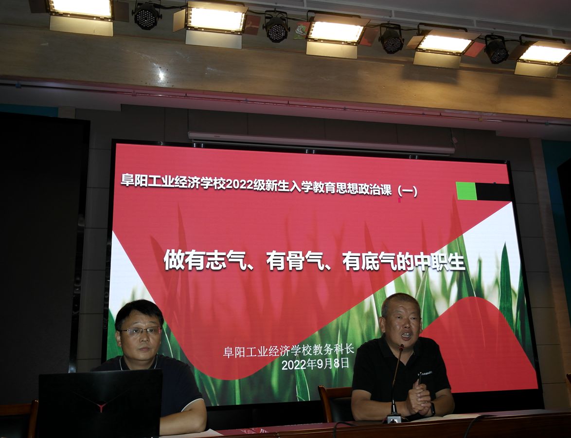 为深入学习贯彻习近平新时代中国特色社会主义思想,全面贯彻党的教育方针,落实立德树人根本任务,9月8日上午,我校在报告厅举行2022级新生入学思想政治课讲座。校教务科科长李阜生以做有志气、有骨气、有底气的中职生为主题进行了讲座,学生科科长马雨涛主持会议。