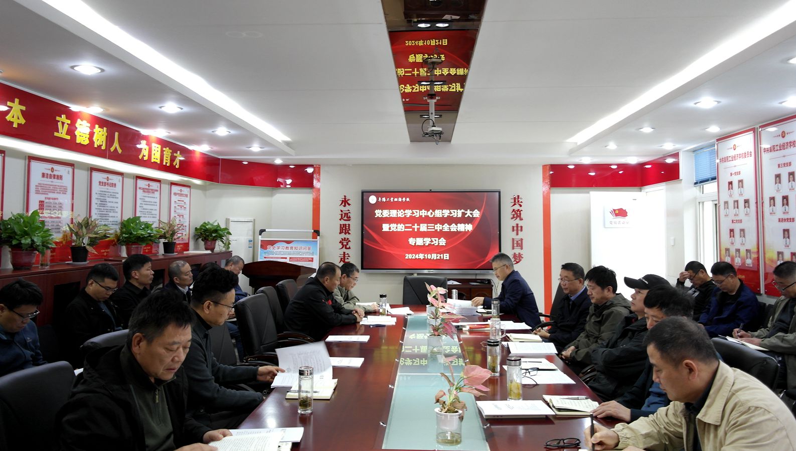 10月21日,阜阳工业经济学校召开党委理论学习中心组学习扩大会暨党的二十届三中全会精神专题学习会,校班子成员、各科室负责人参加会议,会议由校党委副书记、校长孙杰主持。