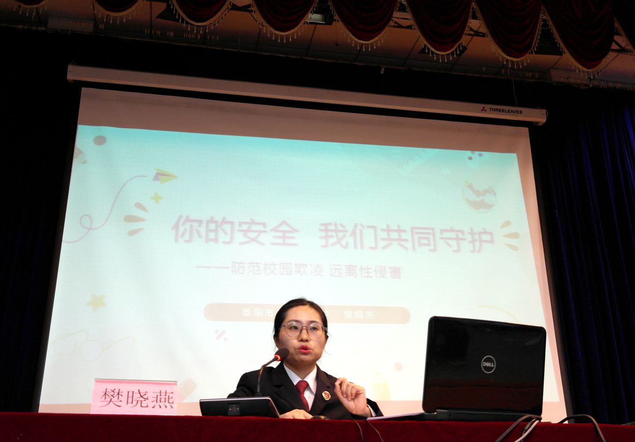 樊晓燕结合法律条文、办案实例,围绕“防范校园欺凌和性侵害”等方面深入讲解,不仅让同学们认识到校园欺凌、性侵害犯罪等行为的危害性和严重性,更教会他们要牢固树立法治意识,自觉做到遵纪守法,善于运用法律武器。在场学生仔细聆听授课,或若有所思、或掌声不断,气氛热烈活跃。