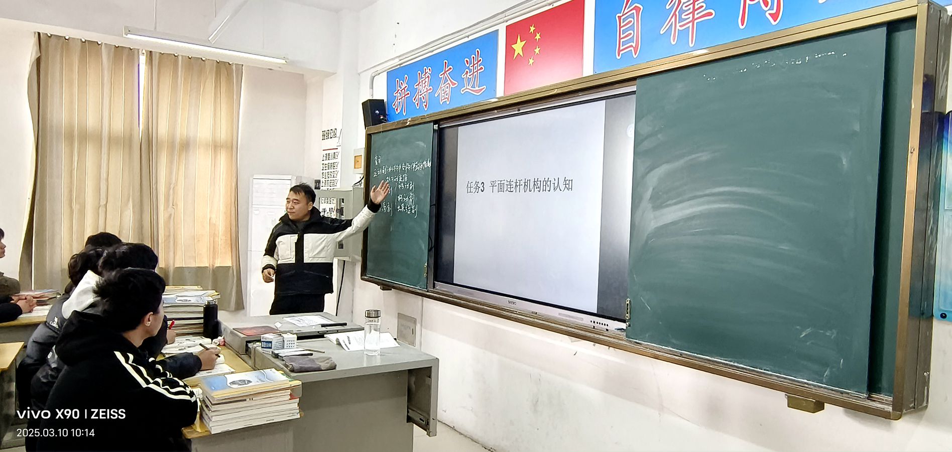 3 月 10 日上午第3节课,王军老师在2024级新能源(3)班开展《平面连杆机构的认知》公开课示范教学。王老师以铰链四杆机构为切入点,启发学生思考个人与团体的和谐关系,让学生在对专业知识有了更清晰认知的同时,更加懂得团队精神的重要性,就如铰链四杆机构,只有每个构件各司其职、相互配合,机构才能顺利运转,激励大家在学习和生活中发挥自身优势,为班级建设和学校发展贡献力量。