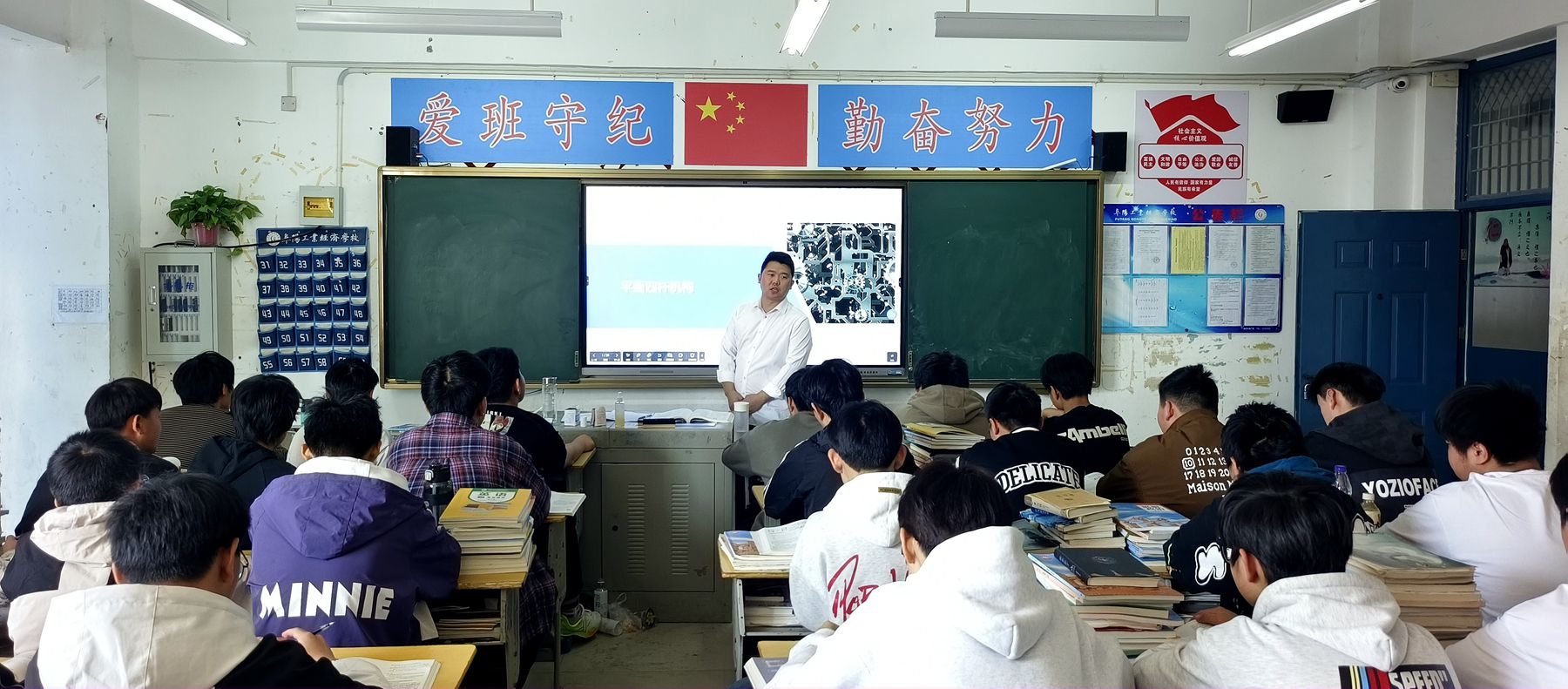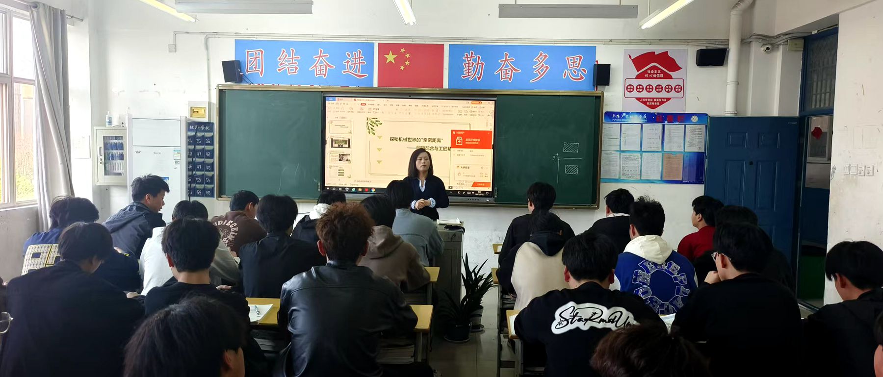 3月25日上午第1节课,李怀秀老师在2024级数控技术应用(1)班开展《间隙配合与工匠精神》公开课示范教学。李老师以国产五轴数控机床主轴装配为典型案例,通过引导学生计算极限间隙、验证配合精度等教学环节,让学生深入理解了“毫米匠心”的深刻内涵,从而树立起对机械精密制造的探索兴趣和严谨细致的工作态度。