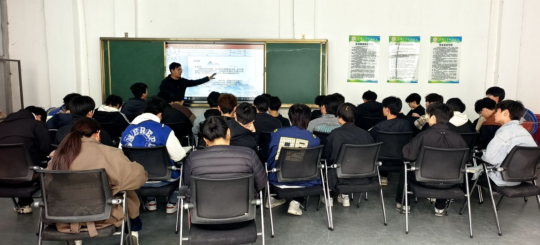 3月27日上午第3节课,毕文龙老师在2024级数控技术应用(1)班开展《转动小滑板车圆锥》公开课示范教学。在实操环节,毕老师以“宁大勿小”的操作准则为载体,通过指导学生计算圆锥半角等关键步骤,让学生深刻体会到“差之毫厘,谬以千里”的职业素养,培养了学生们严谨认真的工作习惯和对专业技能的敬畏之心。