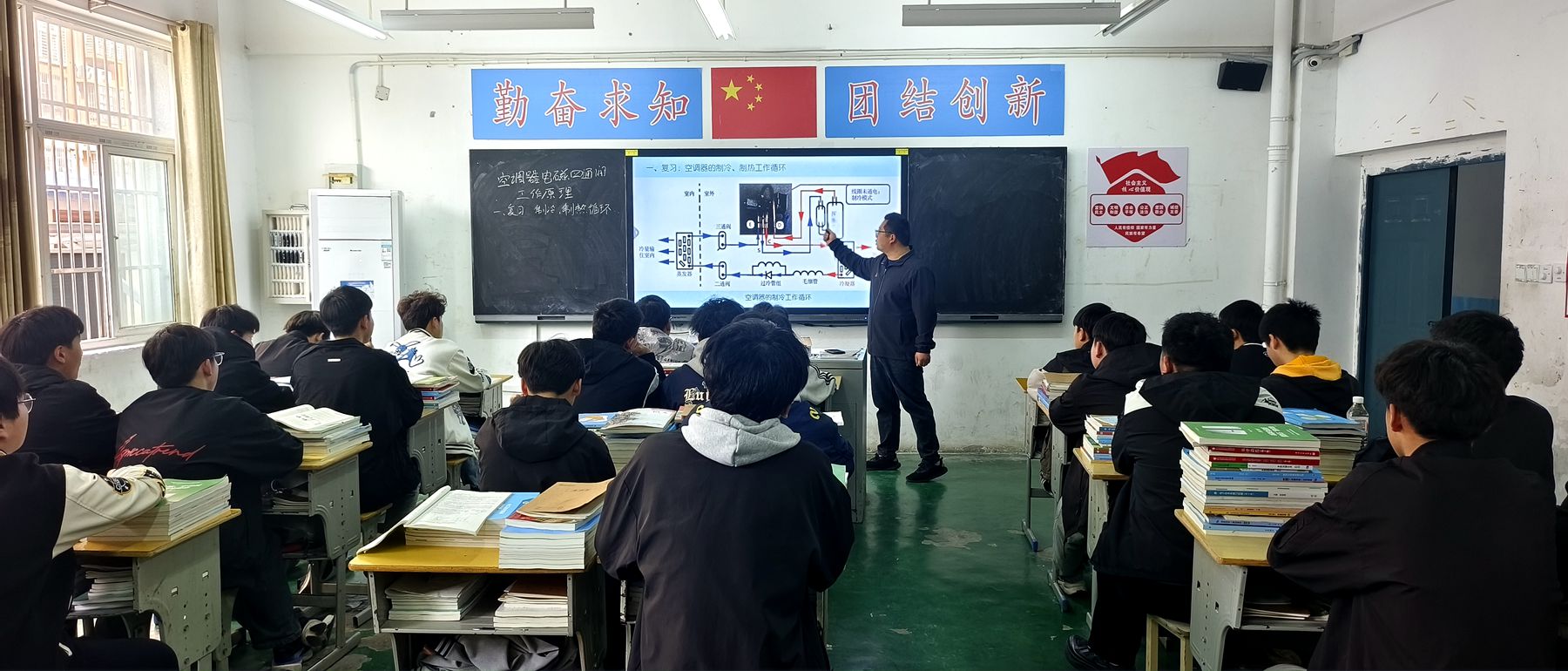 3月24日下午第1节课,孟海涛老师在2024级制冷和空调设备运行与维修班开展《空调器电磁四通阀工作原理》公开课示范教学。课堂上,孟老师将课程思政元素贯穿于电磁四通阀工作原理讲解和维修技巧传授中,通过生动的案例和细致的讲解,激励学生培养耐心专注、精益求精的工匠精神,使学生们认识到,只有具备扎实的专业技能和严谨的工作态度,才能保障设备的稳定运行,为用户提供更优质的服务。
