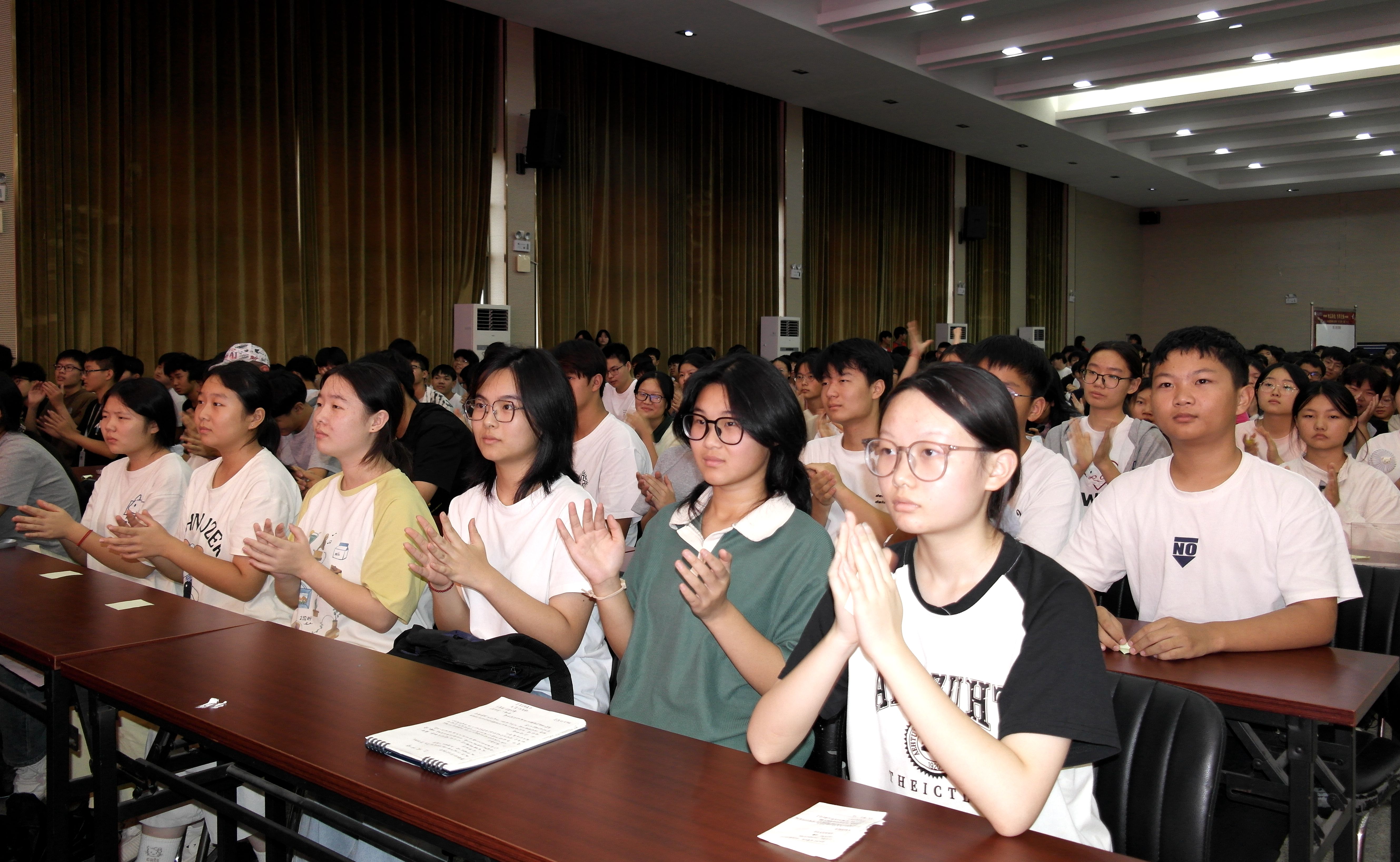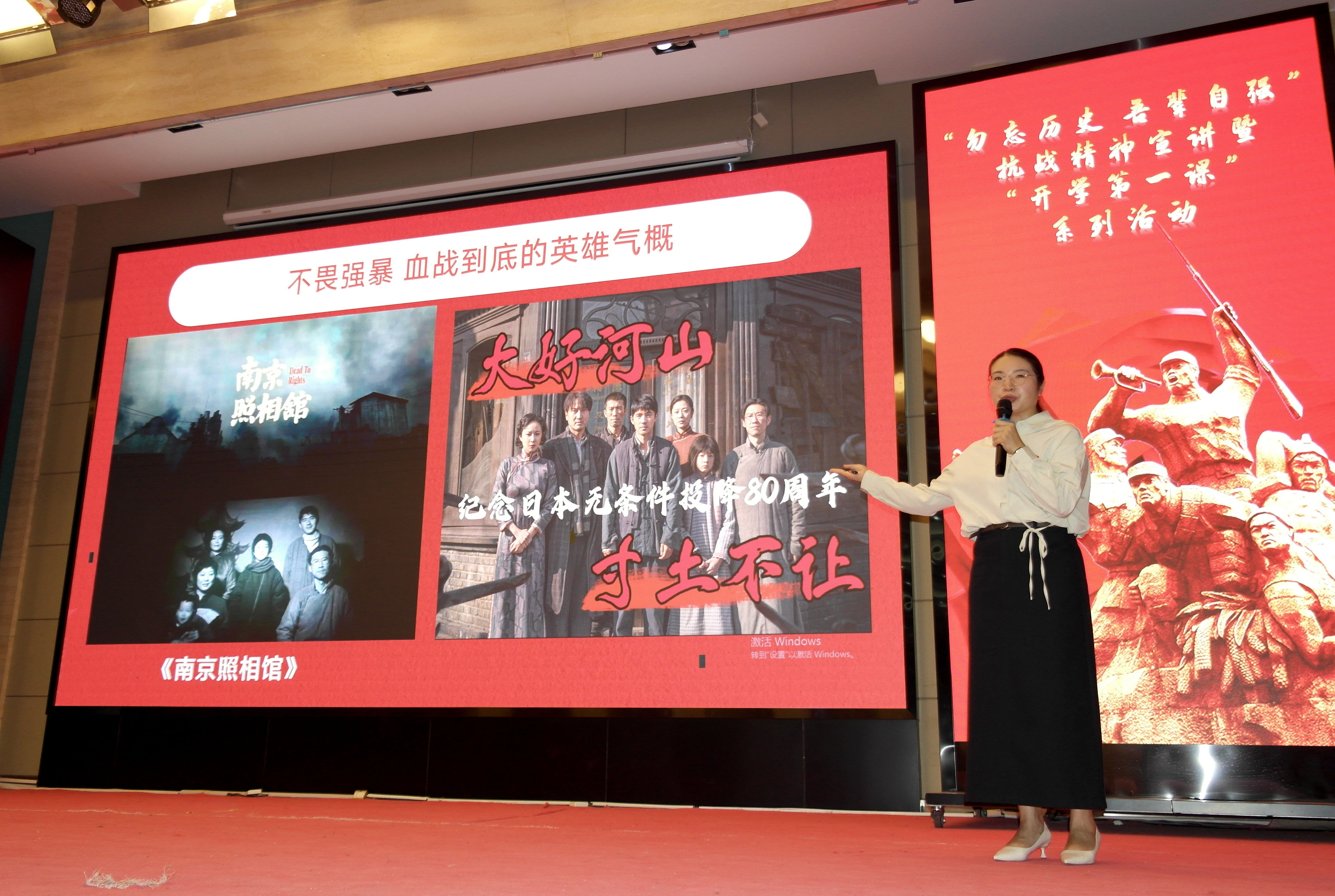 9月8日下午,由市委宣传部、市委讲师团主办的“勿忘历史 吾辈自强”抗战精神宣讲暨“开学第一课”系列活动,走进阜阳工业经济学校。市委宣传部部务会成员、二级调研员刘源,党委副书记、校长孙杰,党委委员、副校长范峰,与700余名新生共同参与活动。