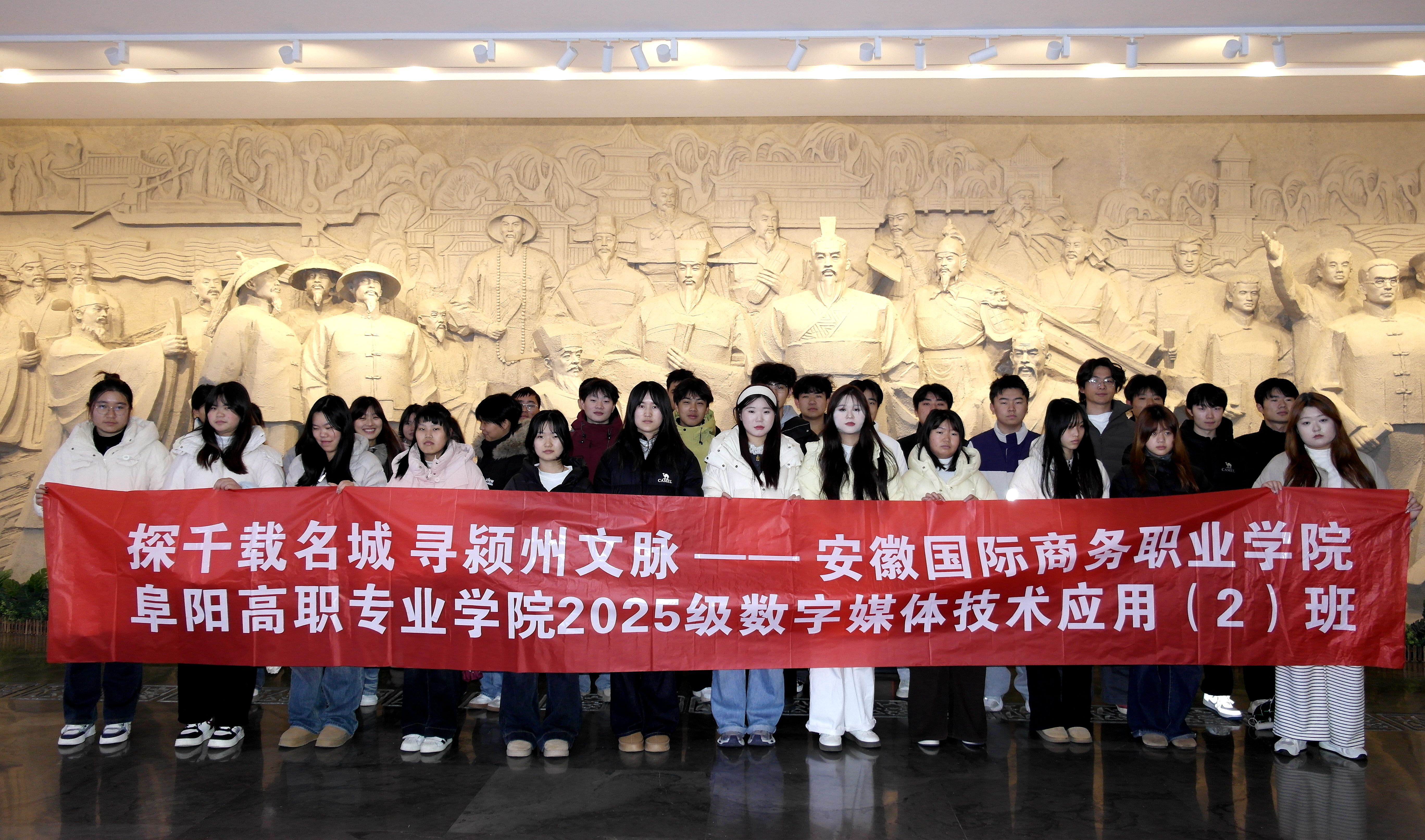 为深化“大思政课”实践育人成效,将专业素养培育与文化传承教育深度融合,12月23日,安徽国际商务职业学院阜阳高职专业学院(阜阳工业经济学校)组织2025级数字媒体技术应用(2)班全体学生,在辅导员及专业教师的带领下赴阜阳市博物馆开展“探千载名城 寻颍州文脉”主题研学活动,让学生在行走中触摸历史温度,在感悟中坚定职业理想。​
