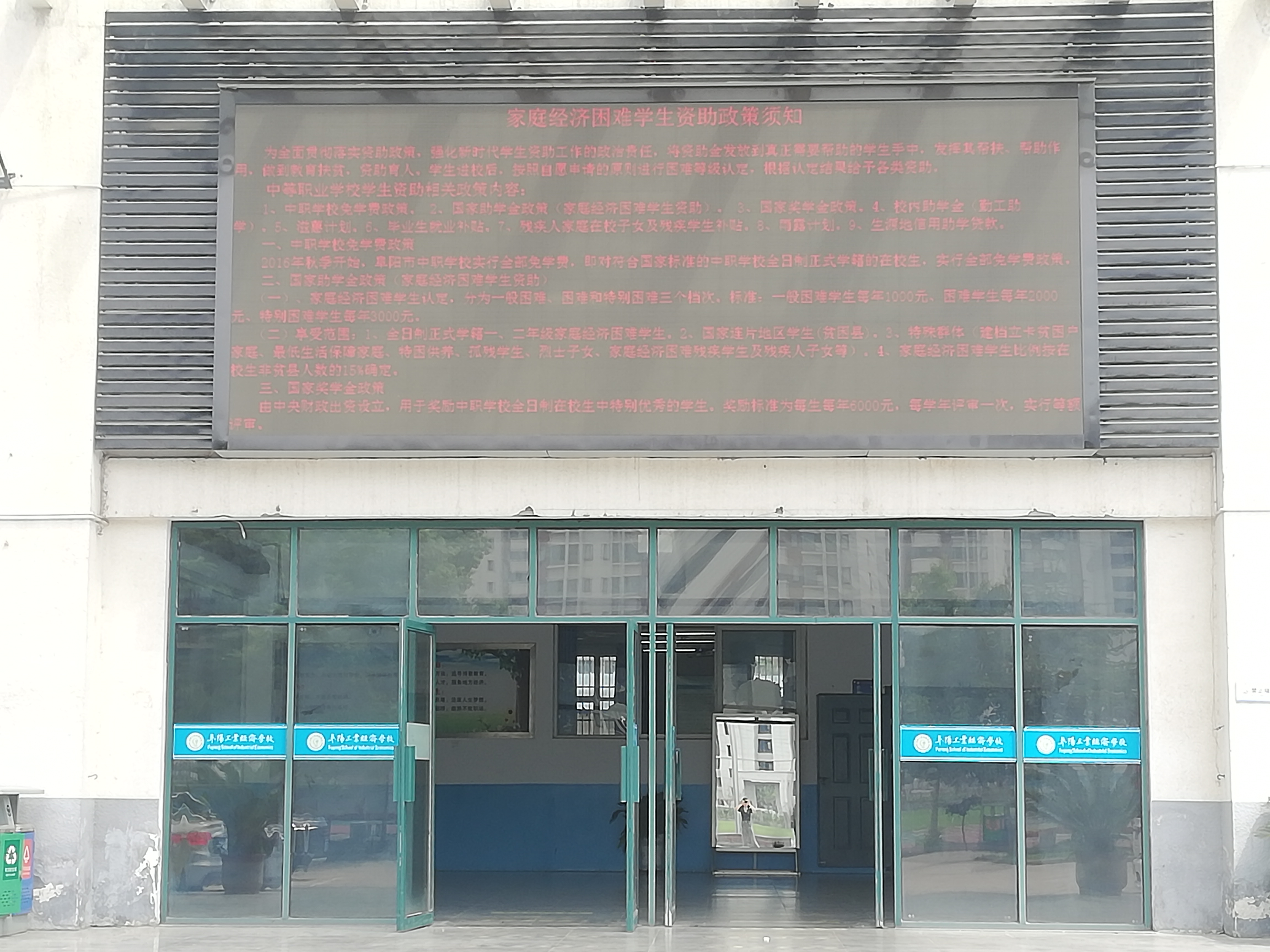 阜阳工业经济学校 资助政策宣传展板及电子显示屏内容图片