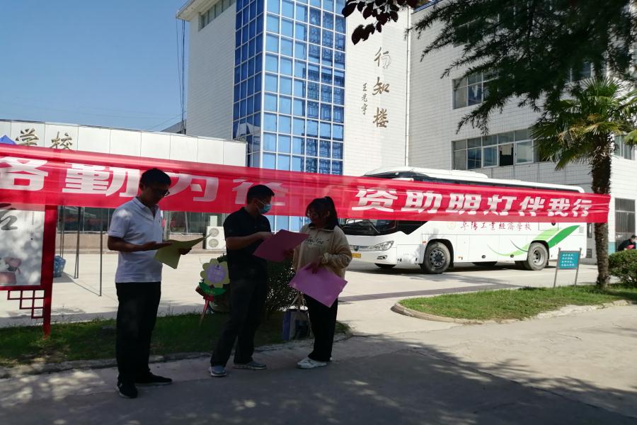 资助政策宣传是阜阳工业经济学校学生资助管理工作的重要组成部分。我校资助办工作人员利用9月6日22级新生报到的有利时机,在校门口现场为新生及家长解读国家资助政策,发放《中职学校家庭经济困难学生资助政策须知》、《家庭经济困难学生认定程序》等相关资助政策宣传资料;在学校操场多处悬挂资助宣传标语及教学楼前电子大屏幕滚动播放《中职学校学生资助相关政策》。并通过观察了解掌握新生家庭经济状况,为今后做好贫困新生的资助工作打牢基础。