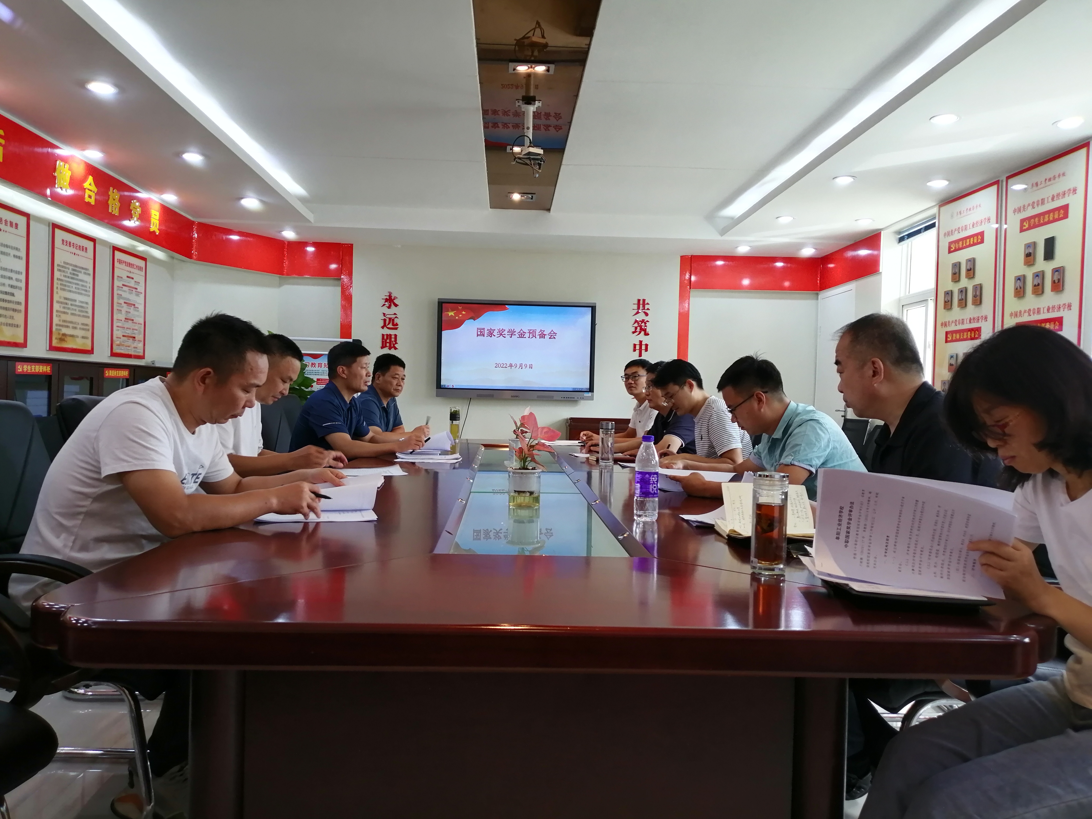 2022年9月9日下午在校办公楼四楼会议室召开了阜阳工业经济学校国家奖学金评审工作预备会。