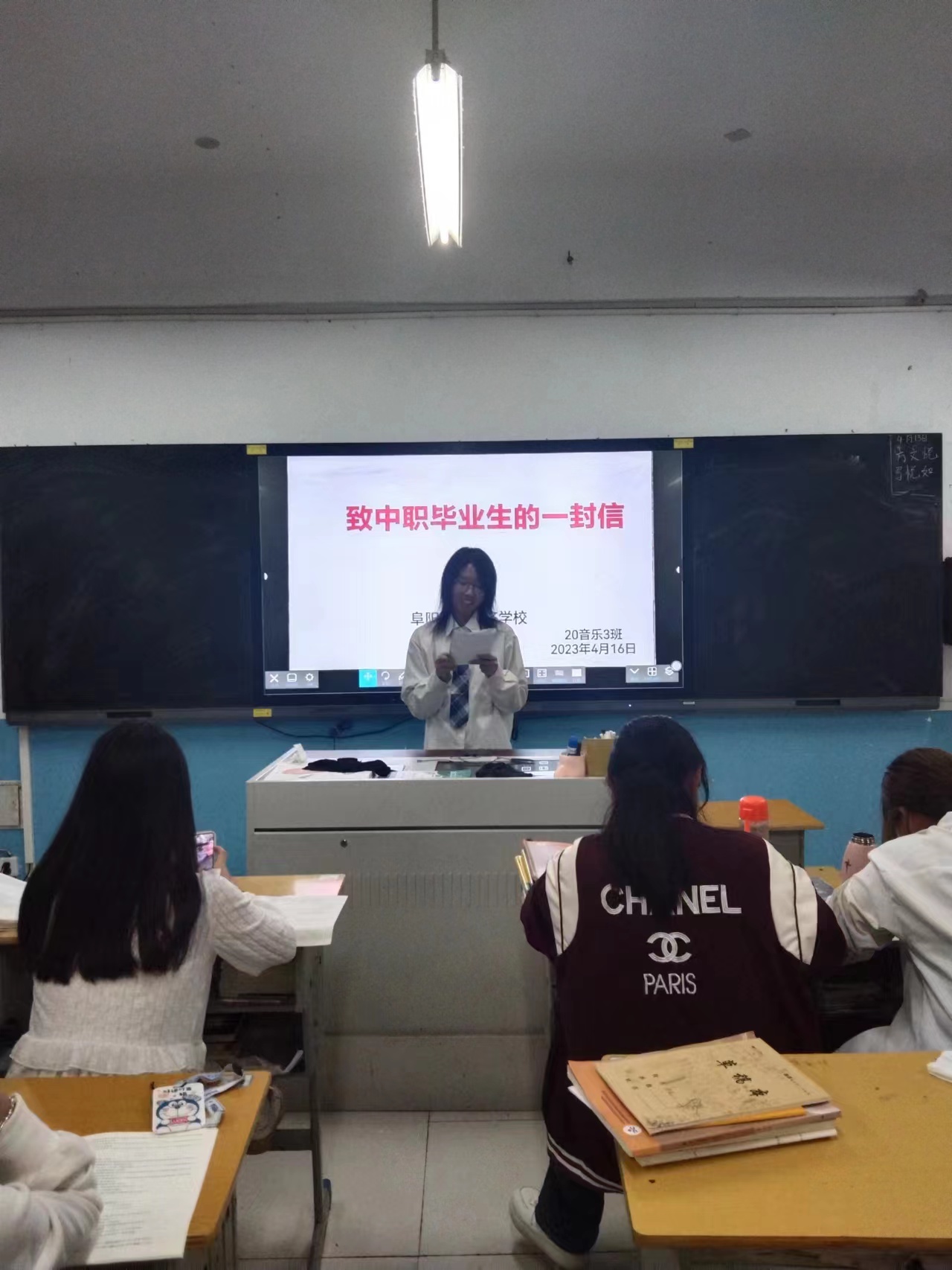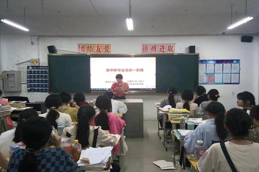 阜阳工业经济学校开展“致中职毕业生的一封信”主题班会活动