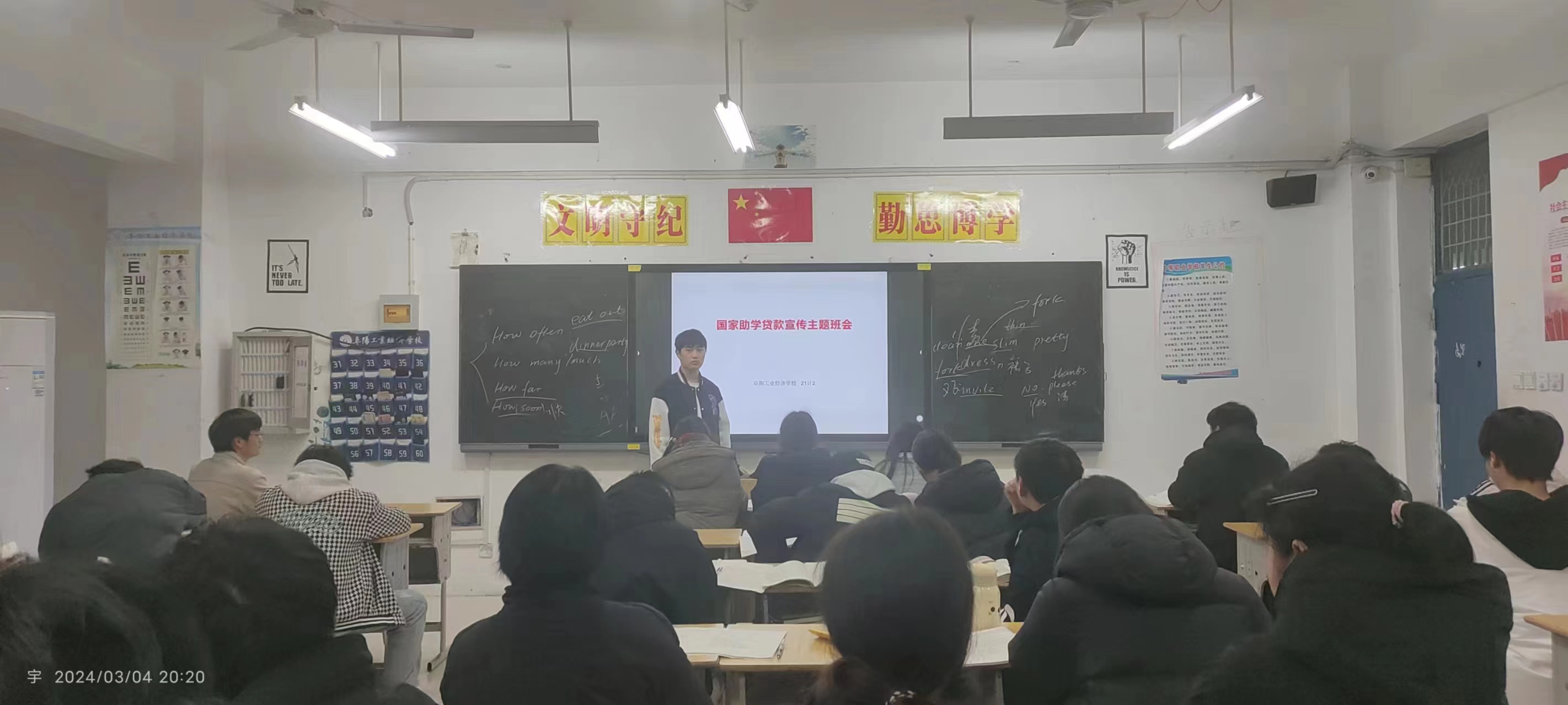 为帮助毕业生更好了解国家助学贷款的相关政策,202437日晚上,阜阳工业经济学校资助办安排21级毕业班利用晚自习时间开展了“国家助学贷款政策宣传”主题班会活动。