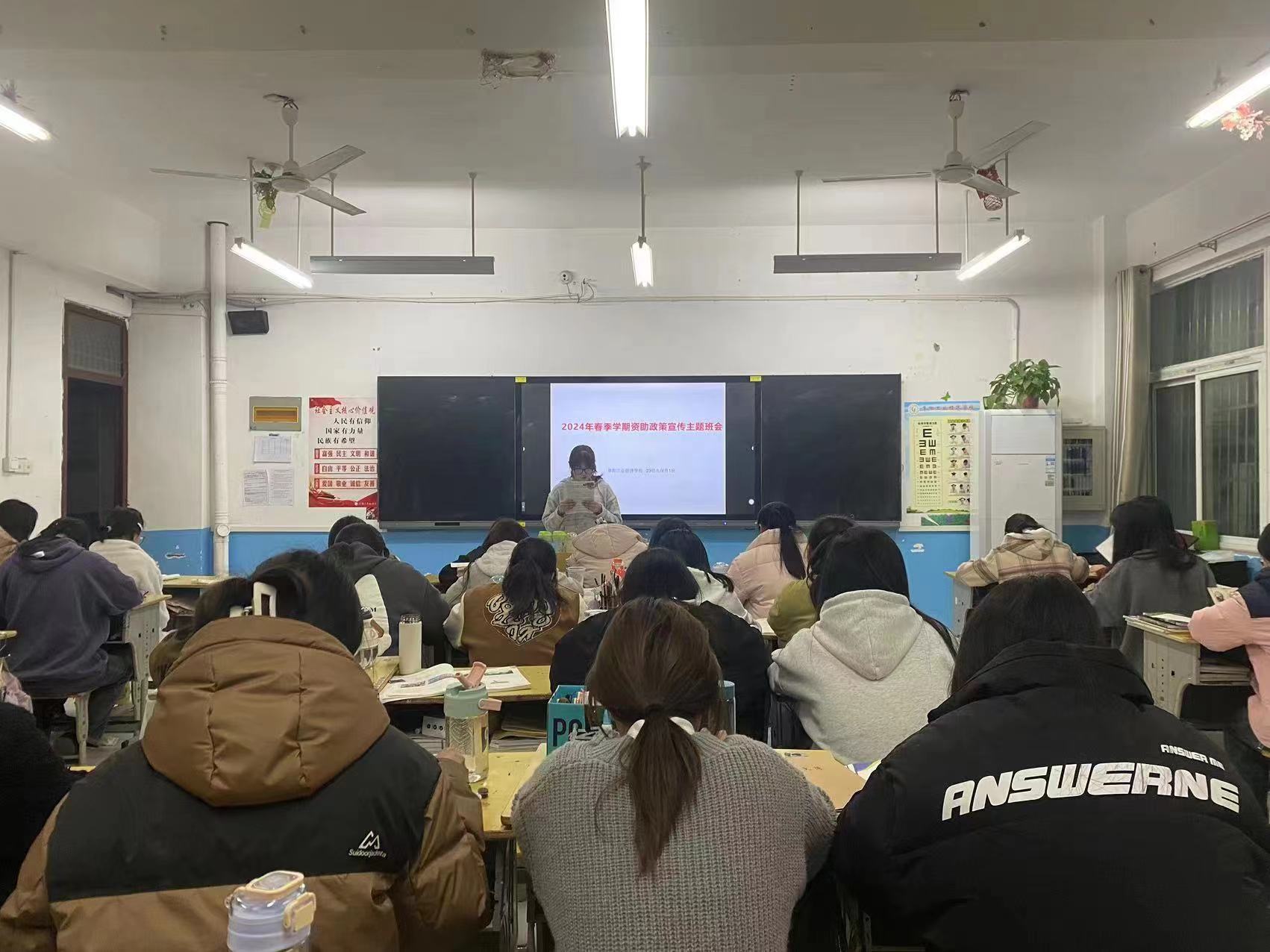 阜阳工业经济学校各班级本周利用晚自习时间开展了资助政策宣传主题班会活动。