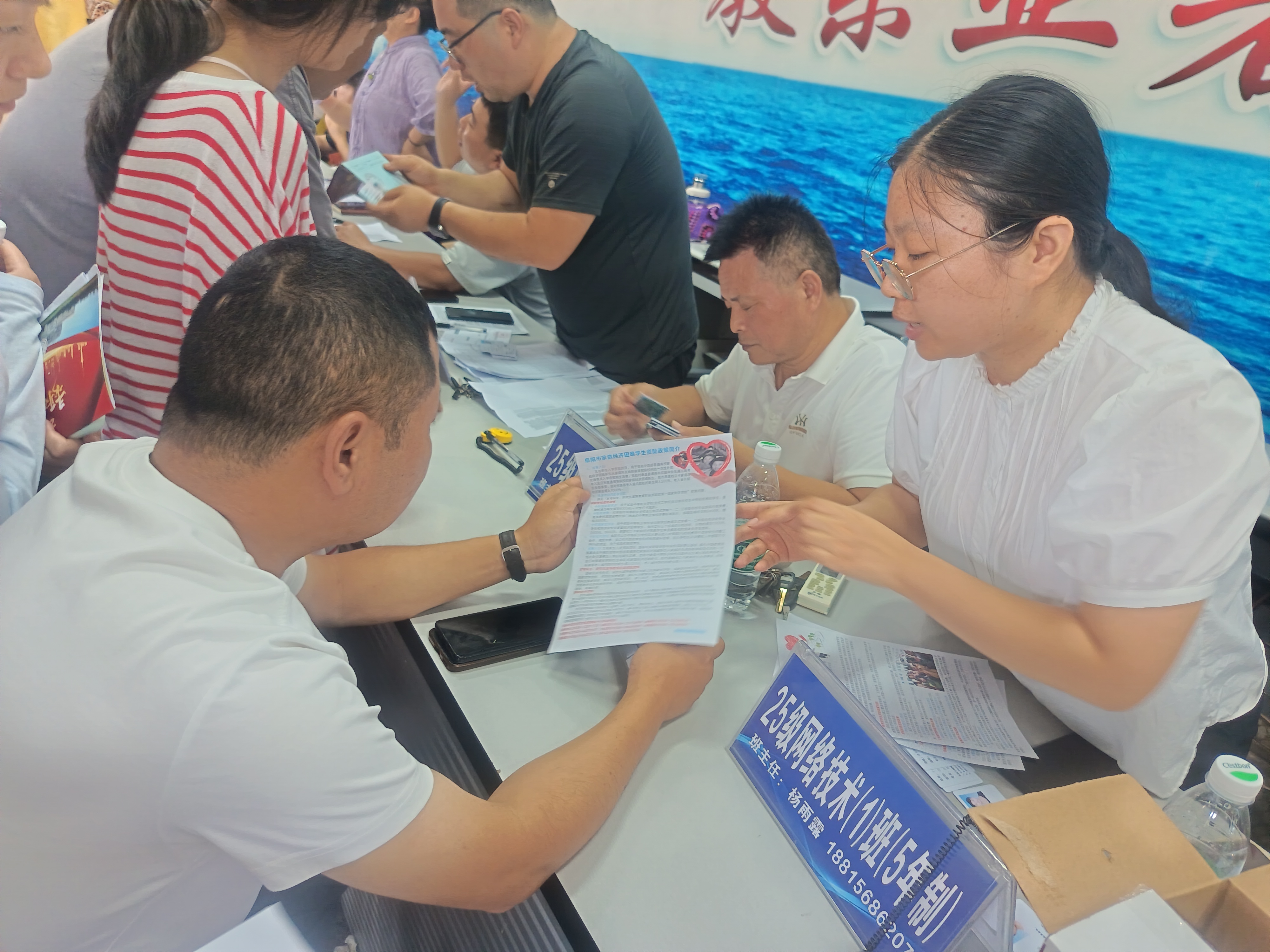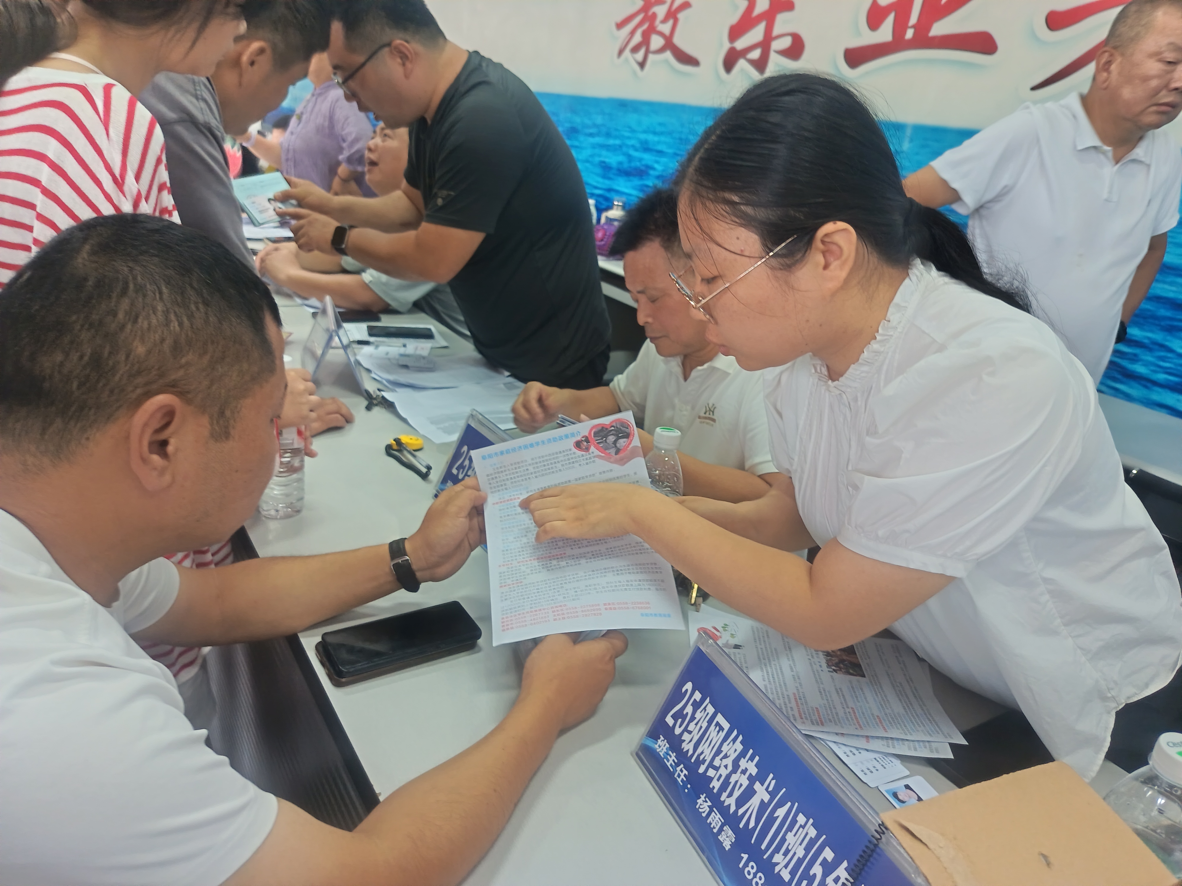 资助政策宣传是阜阳工业经济学校学生资助管理工作的重要组成部分。我校资助办工作人员利用8月26日25级新生报到的有利时机,在校园及报名大厅现场为新生及家长解读国家资助政策,发放《中职学校家庭经济困难学生资助政策须知》、《家庭经济困难学生认定程序》等相关资助政策宣传资料。并通过观察了解掌握新生家庭经济状况,为今后做好贫困新生的资助工作打牢基础。
